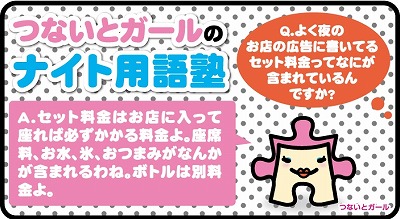 必ずかかる料金よ。座席料、お水、氷、おつまみ